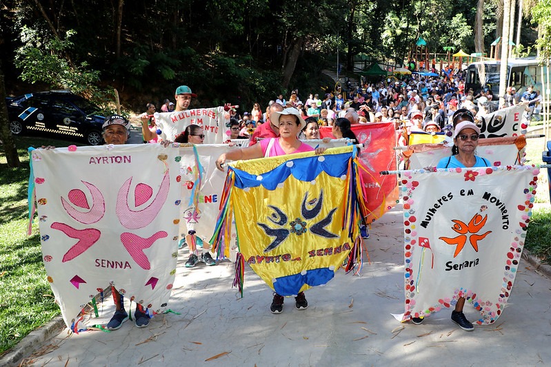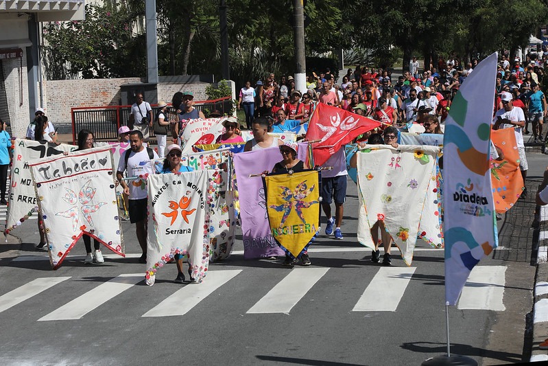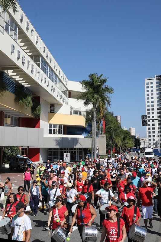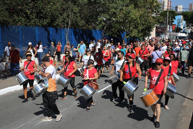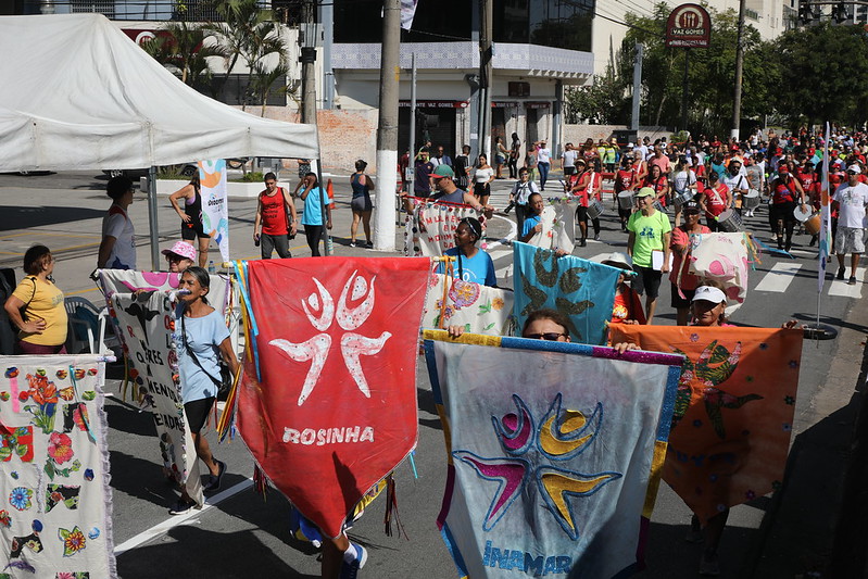 O trajeto contou, por exemplo, com a animação do novo bloco de percussão das Mulheres em Movimento, sob a regência do Toninho, e sua ala de estandartes.