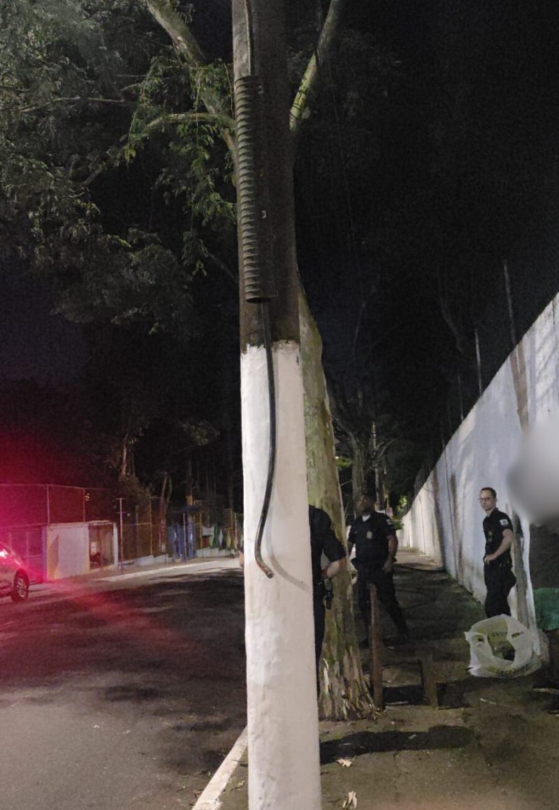 Ao chegar ao local, os guardas encontraram o indivíduo, portanto, já no solo, com aproximadamente 1,30 metro de cabo cortado.